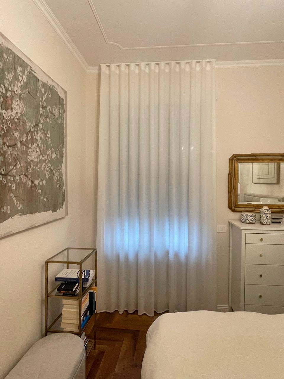 Per entrambe le tipologie è possibile confezionare le tende a filo pavimento, per un risultato essenziale e ordinato oppure in appoggio, con alcuni centimetri di tessuto che si adagiano a terra, impreziosendo l’ambiente e donando un effetto più scenografico e ricercato.